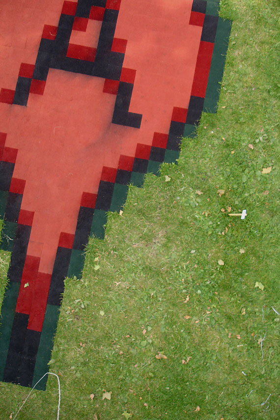 Dans cet espace, il se produit imperceptiblement un premier glissement comme le met en évidence Google Carpet, la réalisation de Robert Sollis. Lorsqu’en 2007, il dispose des carrés de mousse à l’échelle du pixel sur le gazon pour dessiner un marqueur Google Map pour attirer l’attention vers le Royal Collège of Art de Londres, il ne fait que détourner le balisage de Google et provoque une confusion entre le réel et le signe sur les photographies aériennes. Pour exister, il faut d’abord exister sur la carte, d’abord y placer un signe… Il met ainsi en évidence les prémices de ce glissement vers la primauté de la carte sur le territoire, glissement annoncé par Baudrillard.